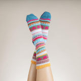 Multi coloured with pink hearts and yellow cuff, Scandi patterned, ladies wool blend socks