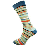 Pale multi coloured stripe bamboo sock with grey heel and cuff