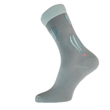 Grey Bamboo Socks with Hot Air Balloons and contrasting cuff.