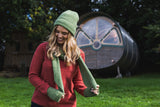 Experience the luxurious comfort of our fine knit green fingerless gloves. With a thumb hole, turnback cuff, and extra length to shield your wrists, these gloves bring a level of coziness you won't find anywhere else!
