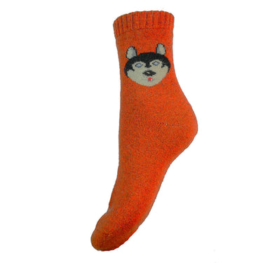 Orange Dog face wool blend socks