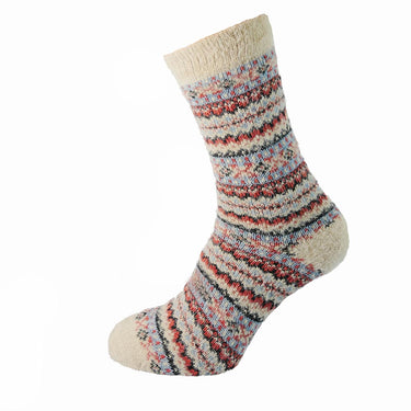 Fawn, blue and rust Nordic patterned Wool Blend socks