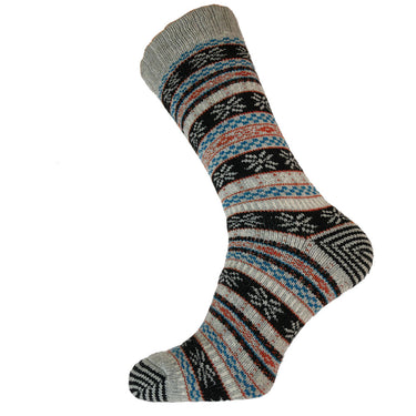 Grey and blue Nordic patterned wool blend socks