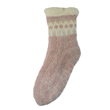 Pink patterned fleece lined cable knit slipper socks