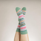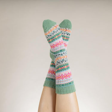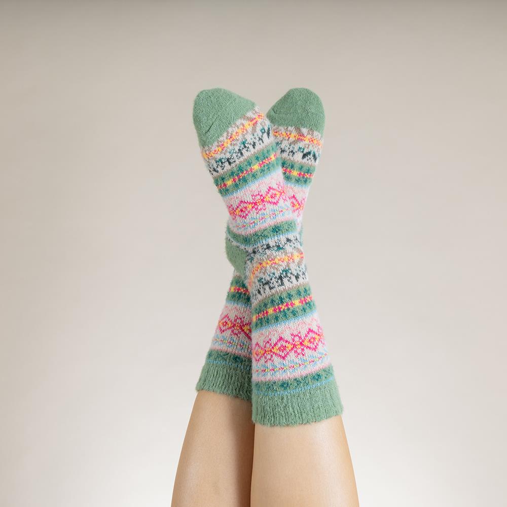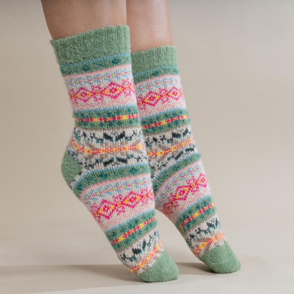 Green, fawn and pink Scandi patterned soft Wool Blend socks