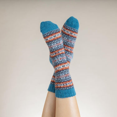Teal, grey and rust Scandi patterned soft Wool Blend socks
