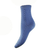 3 pairs of blue, fawn and blue socks. Fine knit with a cable knit design, perfect for wearing with shoes all day.