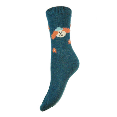 Teal Dog with fluffy ears fine knit wool blend socks
