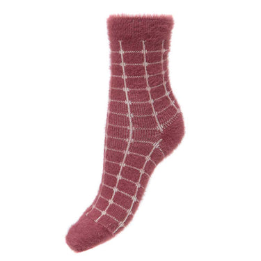 Crafted with a luxe wool blend, these dark pink socks boast an elegant cream grid pattern.