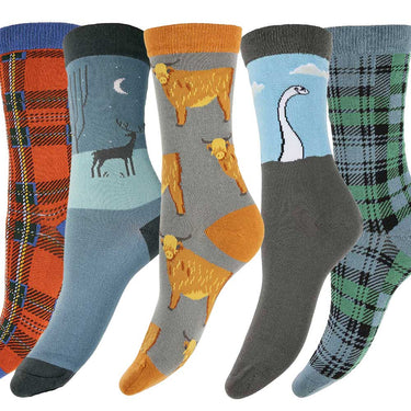 Tartans, Highland Cows, Nessie and The Monarch of the Glen - what could be more Scottish? Chose from these 5 pairs of bamboo socks (kilt not provided!)